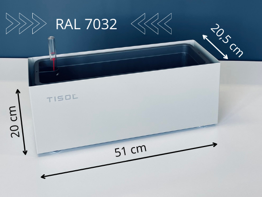 Štěrkově šedý květináč délky 50 cm pro vnitřní i venkovní použití. Kompletní sada pro umístění na okno. Samozavlažovací vyjímatelná vložka Plastia® Bergamot je zárukou bohaté úrody. O bezpečné uchycení se postará důmyslná konstrukce kovového květináče TISOL®FixPot. Duplexní povrchová úprava Zn + RAL 7032 zajistí spolehlivou protikorozní ochranu minimálně na 10 let.