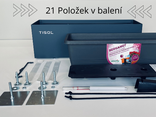 Antracitově šedý květináč délka 50 cm pro vnitřní i venkovní použití. Kompletní sada pro umístění na okno. Samozavlažovací vyjímatelná vložka Plastia® Bergamot je zárukou bohaté úrody. O bezpečné uchycení se postará důmyslná konstrukce kovového květináče TISOL®FixPot. Duplexní povrchová úprava Zn + RAL 7016 zajistí spolehlivou protikorozní ochranu minimálně na 10 let.