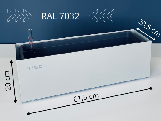 Štěrkově šedý květináč délka 60 cm pro vnitřní i venkovní použití. Kompletní sada pro umístění na okno. Samozavlažovací vyjímatelná vložka Plastia® Bergamot je zárukou bohaté úrody. O bezpečné uchycení se postará důmyslná konstrukce kovového květináče TISOL®FixPot. Duplexní povrchová úprava Zn + RAL 7032 zajistí spolehlivou protikorozní ochranu minimálně na 10 let.