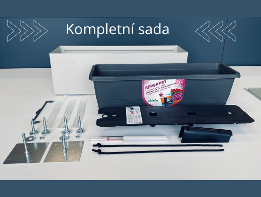 Dejte oknu či terase zelenou a pozorujte, co dokáže příroda přímo na Vašem okně nebo terase. Stačí pouze objednat kompletní sadu pro pohodlné pěstování. Kompletní balení obsahuje vždy samozavlažovací vyjímatelnou vložku s hladinoměrem Plastia®Bergamot a kovový dokovací systém v minimalistickém stylu TISOL®. Největší standardní květináč TISOL®LongPot 160 lze objednat včetně integrované 50 litrové nádrži na vodu. Společně se solárním zavlažováním posunete pěstování na zcela novou úroveň.